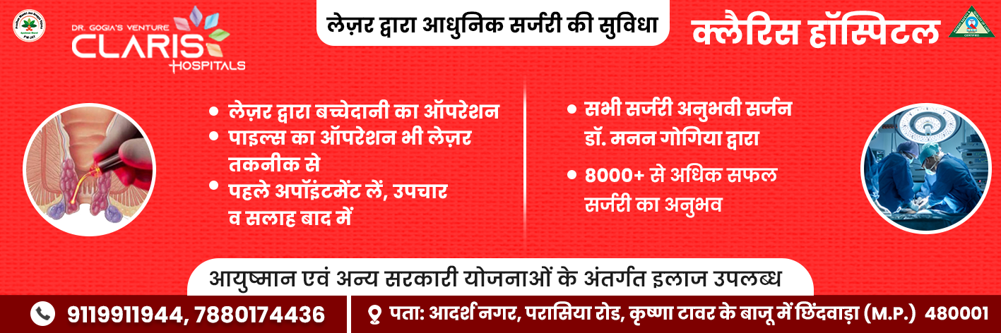 क्लैरिस हॉस्पिटल, छिंदवाड़ा – लेज़र द्वारा आधुनिक सर्जरी की विश्वसनीय सुविधा