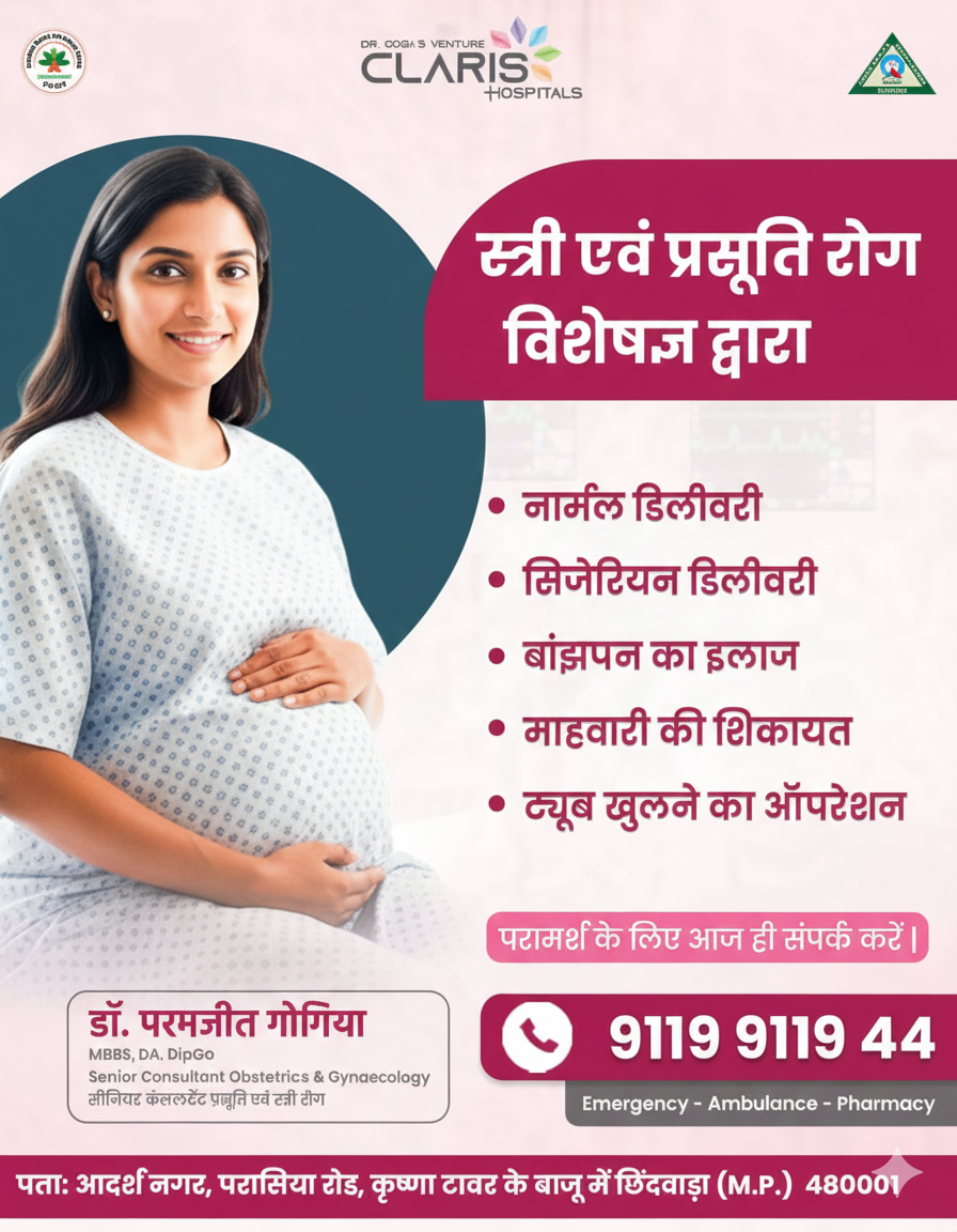 👩‍⚕️ क्लैरिस हॉस्पिटल छिंदवाड़ा – स्त्री एवं प्रसूति रोगों का सर्वश्रेष्ठ उपचार
